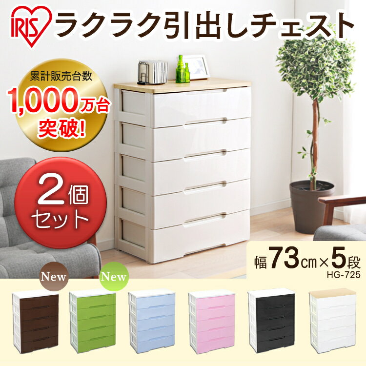 【2個セット】チェスト 5段 幅73 HG-725R アイリスオーヤマチェスト 白 ホワイト 完成品 プラスチック 木天板 押入れ 押入れ収納 クローゼット収納 収納 引き出し ランドリー リビング 子供 一人