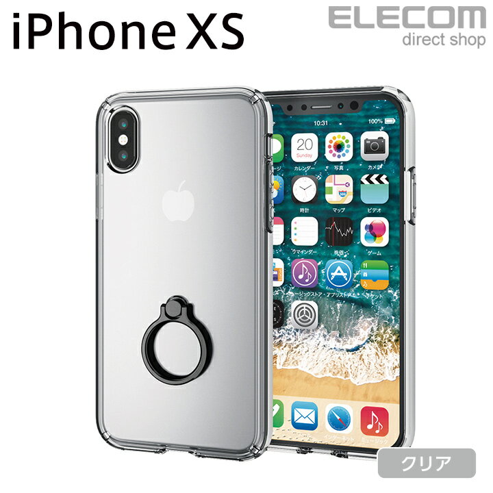 エレコム iPhone XS ケース 耐衝撃 TRANTECT フィンガーリング付き ブラック スマホケース iphoneケース PM-A18BHVCRBK